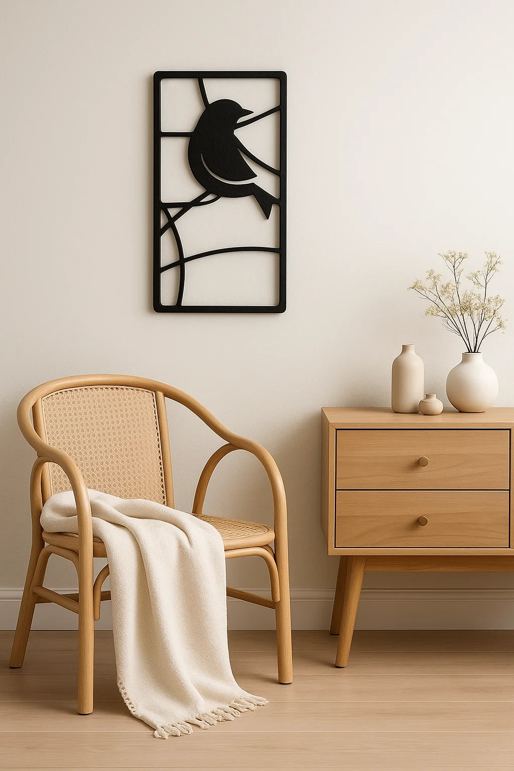 Made from high-quality metal and precision-cut with care, this panel captures the softness of flight in solid form. The powder-coated finish ensures durability and elegance, lasting 5–15 years without fading — far surpassing acrylic decor in depth and longevity.